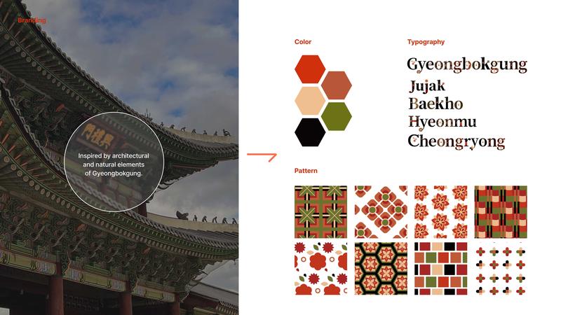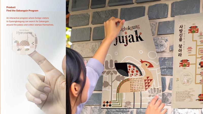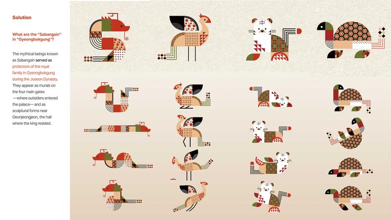 Team Members: Semin Kim, Kwon Yoon, Park Jangsol, Won Heesoo & Kang HyewonAs global interest in K-content continues to rise, Korea is welcoming an increasing number of international visitors. Among the country’s historic sites, Gyeongbokgung stands as the most visited royal palace by foreign tourists. However, many visitors still find it difficult to recognize what distinguishes Gyeongbokgung from other palaces, as its cultural features are not always communicated in a clear or engaging way. This highlighted the need for new cultural content that can better express the palace’s unique identity. To address this, we focused on the “Sabangsin,” the Four Guardian Deities believed to protect the royal family during the Joseon dynasty. These mythological figures appear within the palace complex as vivid gate murals and sculptural forms near important halls, yet their meaning remains unfamiliar to many visitors today. By reinterpreting the Sabangsin through modern visual design, we aimed to create content that is both accessible and appealing to a global audience. In addition to the Sabangsin, we incorporated other symbolic aspects of Gyeongbokgung, including its architectural forms, natural scenery, seasonal atmosphere, and traditional motifs such as the Four Gentlemen.